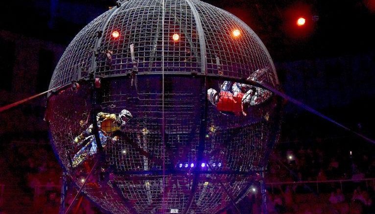 - Мотокаскадёры в шаре! Золотые призеры фестивалей в Москве и Китае! Адреналин, огонь и рев моторов прямо над головами зрителей!