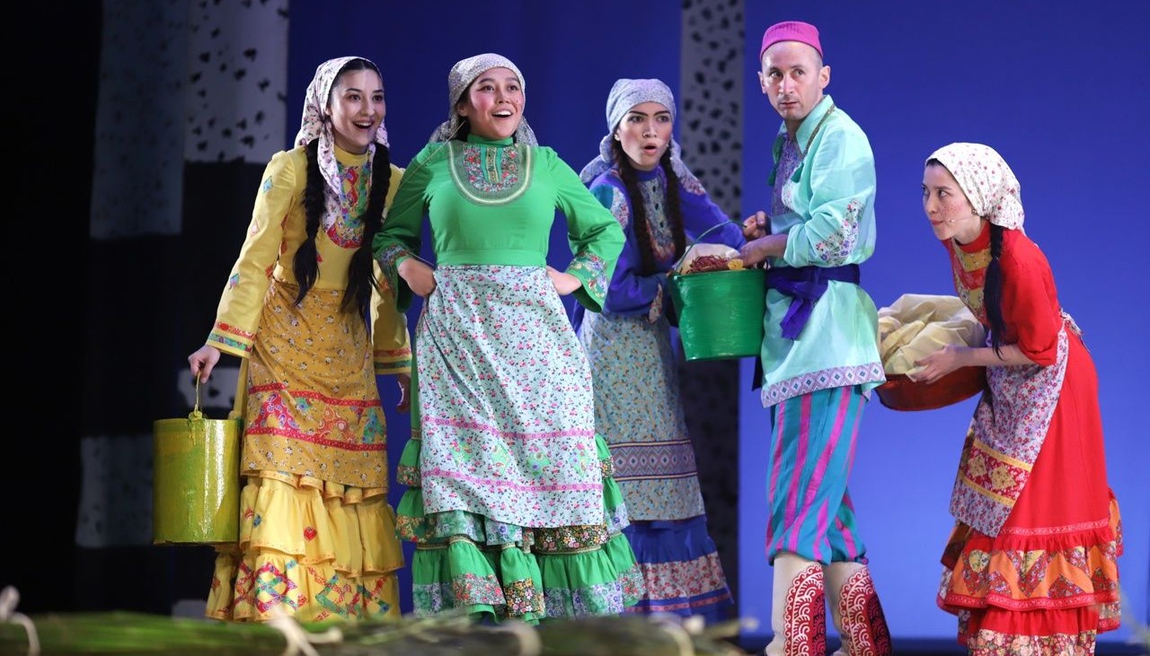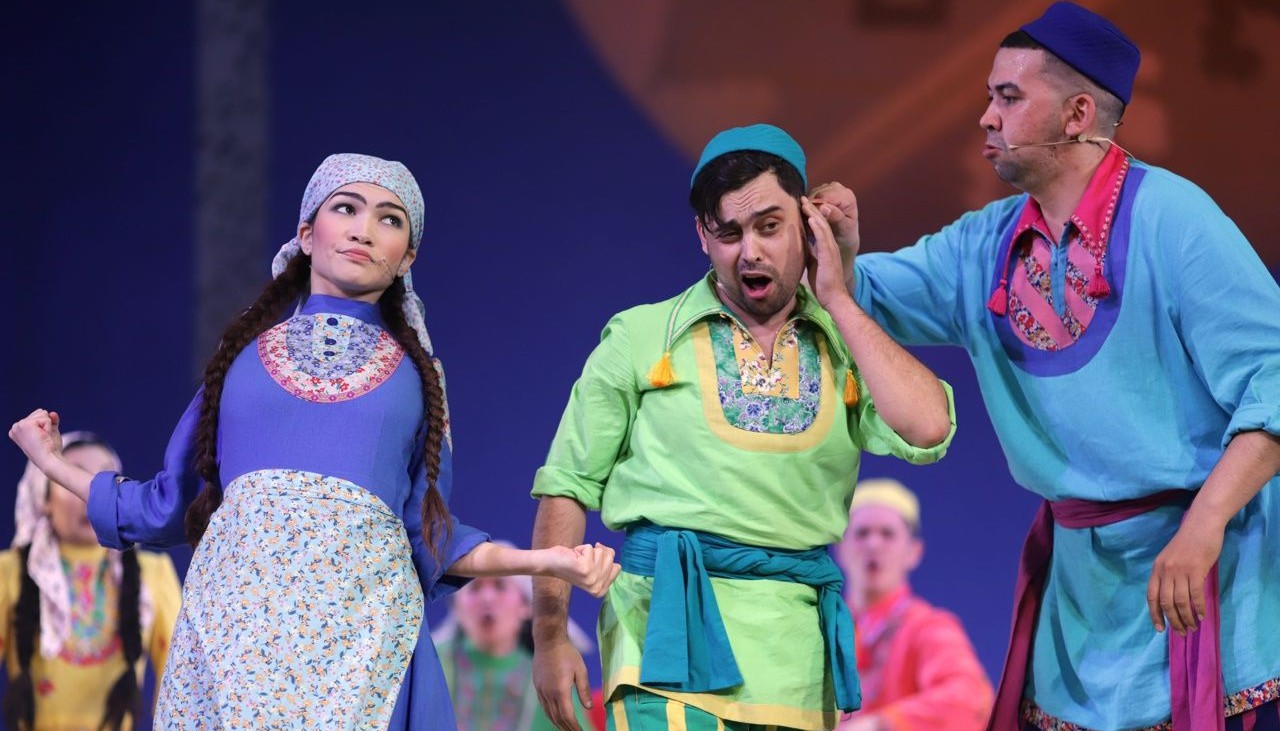 Драматические действия спектакля переплетаются с народными играми, плясками и обычаями. В музыкальной основе спектакля – песни и музыка, сочиненная композитором Нуром Даутовым в исполнении оркестра театра.